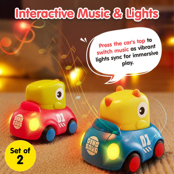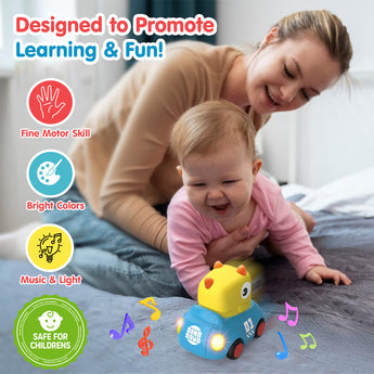 With a simple pull-back action, kids can enjoy watching the cars zoom forward, encouraging crawling and chasing fun. The built-in LED lights make the experience even more delightful, while the sturdy, child-safe material ensures long-lasting durability.