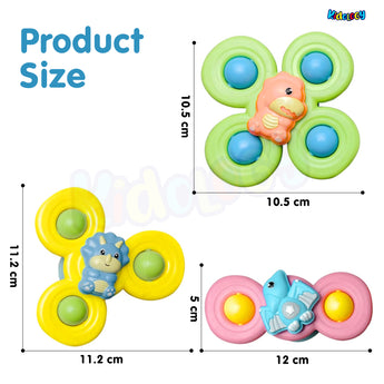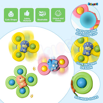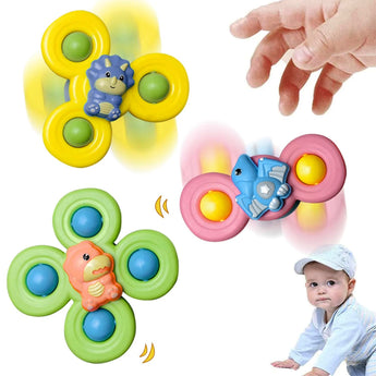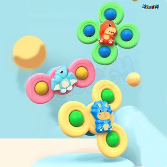 ✔️ 3 x Dinosaur Spinner Sensory Bath Toy (Assorted Shapes & Colors)