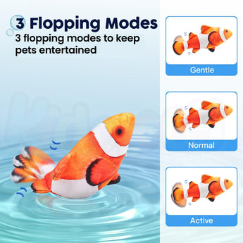 The Flopping Fish Toy is an engaging and realistic interactive toy designed to keep your cat (or small dog) entertained, active, and happy. Powered by a built-in motion sensor, this adorable clownfish flops and wiggles every time it's touched—mimicking real fish movement! Packed with catnip and silvervine for added excitement, this toy is perfect for solo play, stress relief, and exercise, especially when you're not around.