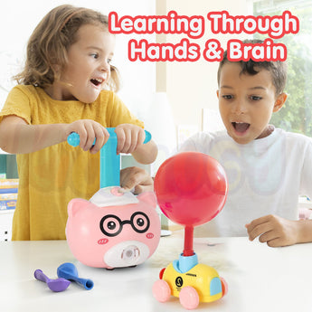 The Geek Piggy Balloon Car Launcher Toy Set is a hands-on educational toy designed to teach kids about air pressure and motion. With its adorable piggy design, kids can inflate balloons using the built-in pump, attach them to the cars, and watch as they race off — all without batteries! Ideal for children aged 3 and up, this toy encourages interactive play and STEM learning in the most playful way.