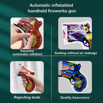 Bring instant excitement to any party with the Inflatable Fireworks Gun — a fun, air-powered confetti launcher that adds color and energy to birthdays, weddings, holidays, and more. Self-inflating and safe for all ages, this toy offers the joy of fireworks without the risks of flames or explosives. Just blow, squeeze, and boom — let the confetti fly!