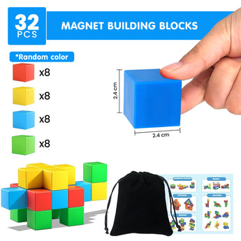 ✅ 32-Piece Set – Includes 32 magnetic blocks (25mm), 4 vibrant colors, 10 pieces each.