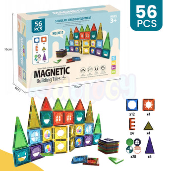 Magnetic Building Tiles Toy - Set of 56 pcs