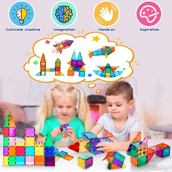 Our Magnetic Building Tiles Toy set combines fun and education seamlessly. With strong magnets and a safe, child-friendly design, kids can create endless structures — from geometrical shapes to fantastical creatures — boosting their hand-eye coordination, motor skills, and critical thinking. Whether they're building alone or collaborating with friends, this toy fosters creativity and confidence in every little builder.