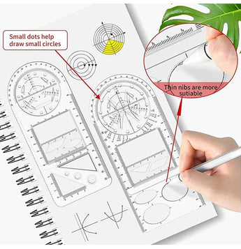Unlock your creativity with our multifunctional measuring ruler! 📏✏️ Perfect for artists, students, and designers, it features various shapes and clear scales for precise drawing. Made of high-quality plastic, it's durable and easy to carry.