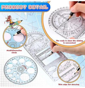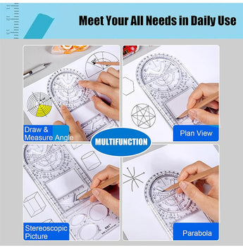 - Versatile Design: With its multifunctional features and diverse geometric shapes, our ruler caters to various creative and technical needs, offering convenience and flexibility for artists, designers, students, and professionals alike.