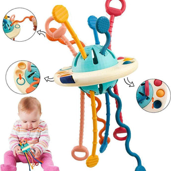 This Octopus Silicone Pulling Toy has a unique design, which can develop kids' motor skills and sensory perception by pulling up and down silicone ropes, and pressing and pushing buttons. The toy will keep the baby occupied and entertained for hours.