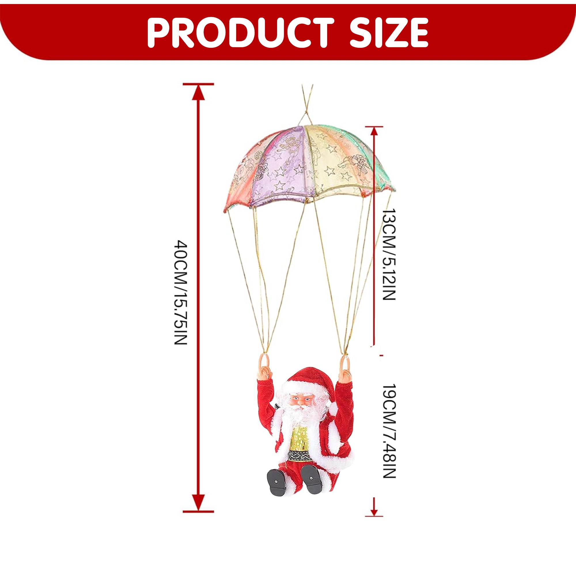 Inject holiday fun into your home with the Tumbling Parachute Santa Toy! Watch as Santa floats down on a vibrant parachute while singing festive songs. Perfect for decking the halls, surprising loved ones, or simply sparking joy in any room.