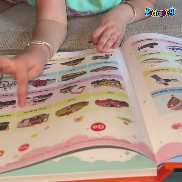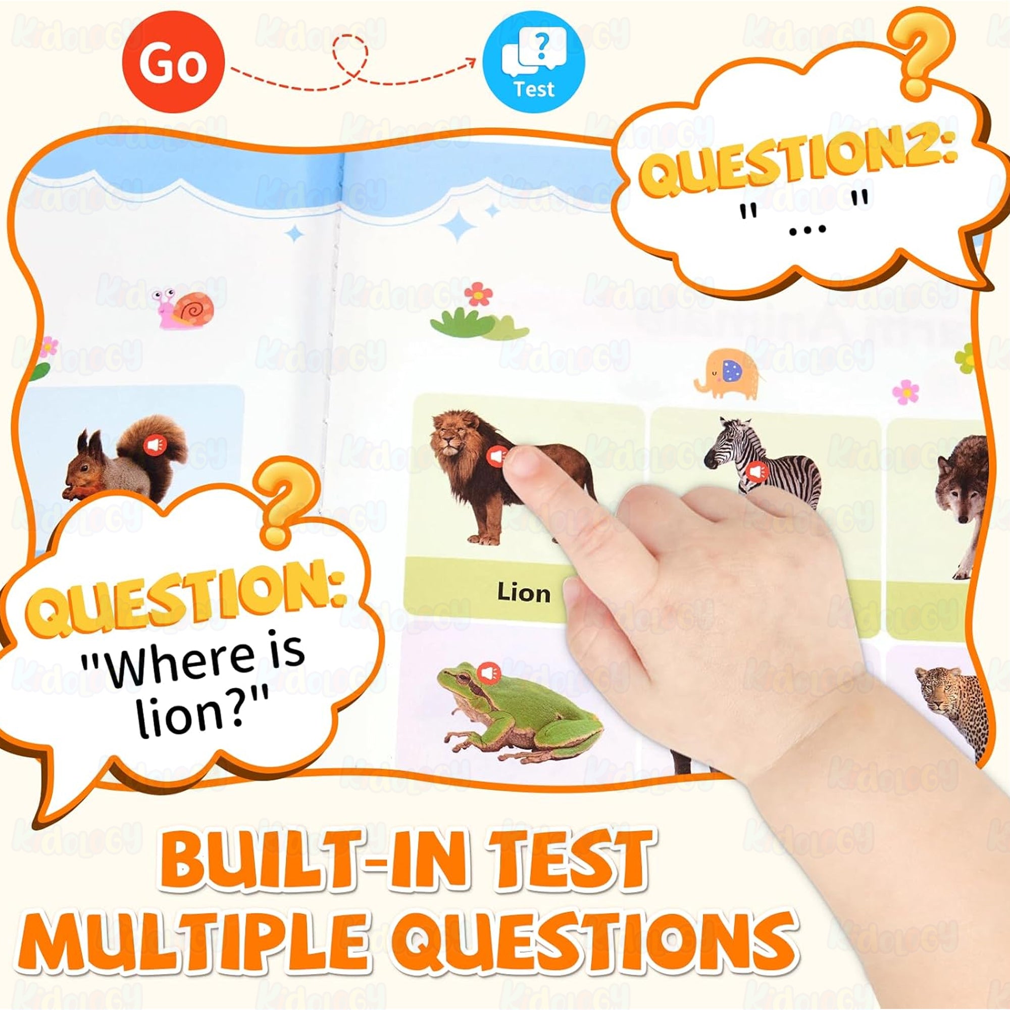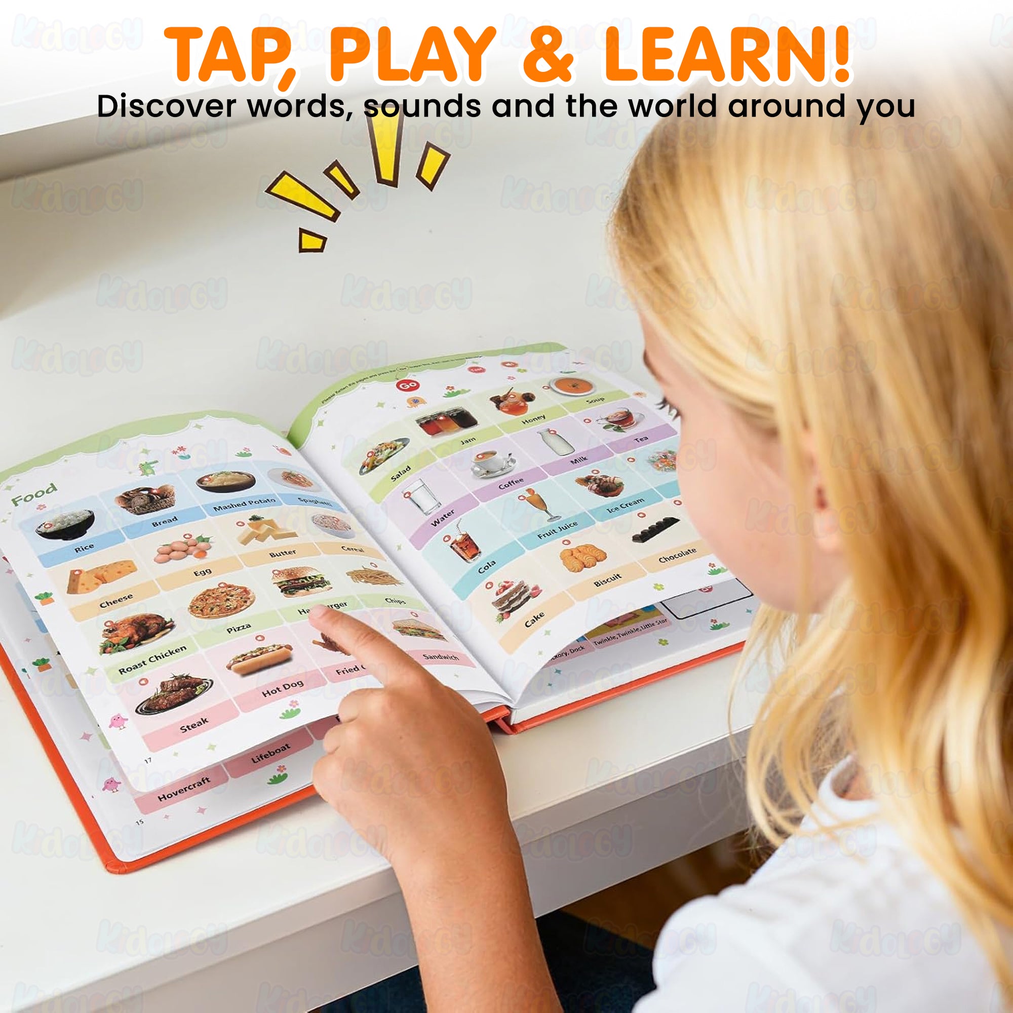 Simply press the sound buttons, listen to the pronunciation, repeat the words, and explore different themes like animals, food, colors, and more. Kids learn naturally through repetition and play!