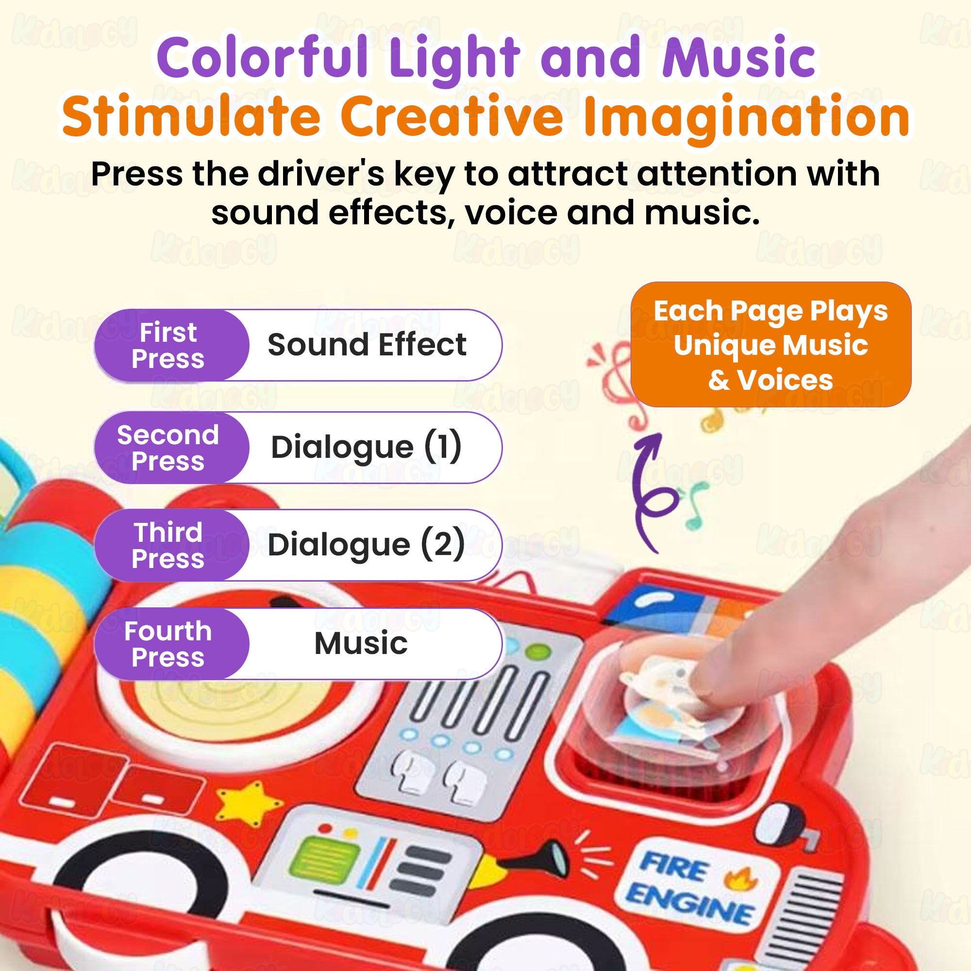 ✔ Interactive sound & light buttons