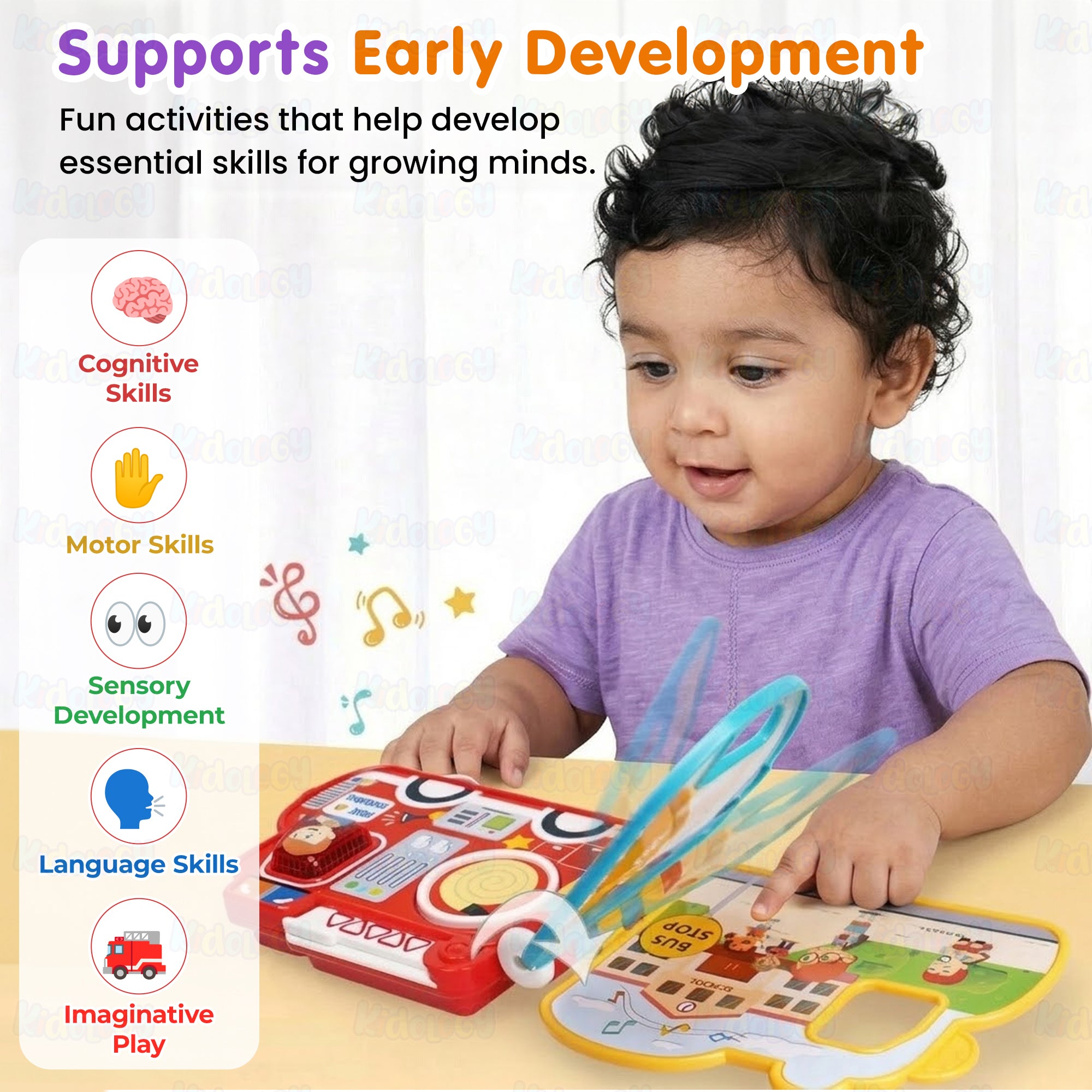 ✔ Encourages early language and cognitive skills
