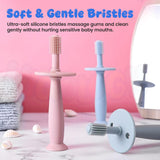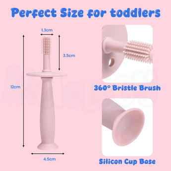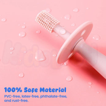 🌀 360° Soft Silicone Bristles – Cleans the baby’s teeth, gums, and tongue from every angle. Ultra-soft and flexible bristles gently remove plaque while being safe for delicate mouths.