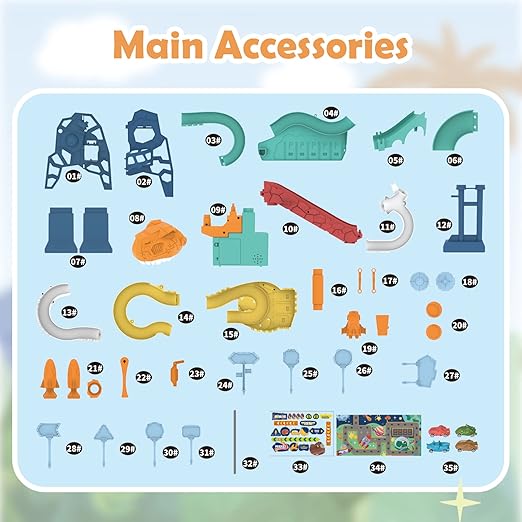 • 1 Space-Themed Dinosaur Race Track Set: Including multiple curved tracks, rotating spacecraft, and mini race cars.