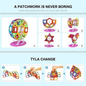 Our Magnetic Piece set includes 73 durable and high-quality magnetic blocks, perfect for your little one's creative play and learning. These magnetic blocks are designed with strong and stable magnets, making them easy to build and ensuring that your child's creations stay in place.