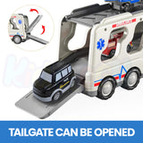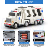 🩺 Complete 5-in-1 Set – Includes 1 large carrier ambulance truck and 4 mini emergency vehicles: stretcher truck, rescue SUV, mini ambulance, and a rescue helicopter.