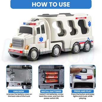 🚨 Light & Sound Effects – Button-activated lights and siren sound mimic real-life ambulances. The sound lasts only 8 seconds per press to protect sensitive ears.