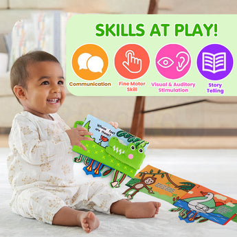 A perfect blend of fun and learning—this cloth book introduces animals through touch, sound, and visuals. Ideal for babies and toddlers, it keeps children engaged and supports developmental milestones.