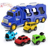 🚚 5-in-1 Truck Toy Set – Includes a large blue transport carrier and 4 detailed mini vehicles: Helicopter, Fire Truck, Ambulance, and Taxi—perfect for teaching kids about transportation and emergency response.