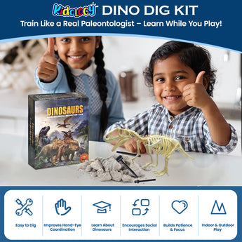 Let kids dig, discover, and learn with this hands-on Dinosaur Fossil Digging Kit — an exciting adventure that combines fun with education. Perfect for curious minds who love dinosaurs, this interactive kit encourages imagination, patience, and scientific exploration.