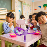 Tubes disconnect easily for quick cleanup, and the set comes with a durable storage box, fostering responsibility in organizing and storing the toy.