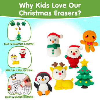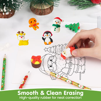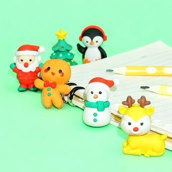 ✔️ 6 × Christmas-Themed Soft Rubber Erasers
