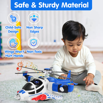 Designed for curious toddlers, this self-rotating helicopter changes direction when it bumps into something, automatically transforms mid-play, and captivates with colorful lights and sound effects. It’s more than a toy—it’s a sensory-packed journey for your little explorer!