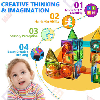 Our Magnetic Building Tiles Toy offers an exciting, hands-on way for children to learn through play. These transparent, magnetic blocks help kids understand geometrical shapes, color recognition, and spatial awareness while boosting their motor skills and hand-eye coordination. With an open-ended design, children are free to create unique structures without relying on manuals — encouraging them to think independently and explore their creativity.
