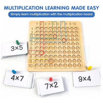 A hands-on Montessori-inspired wooden multiplication board that helps children master math skills through interactive learning, colorful blocks, and number patterns.