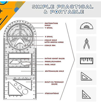 - Convenient Portability: With its compact and lightweight design, the ruler is easy to carry, allowing users to access its versatile drawing and measuring functions anytime, anywhere, whether at home, school, or work.