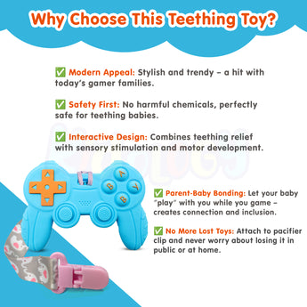 🎮 Realistic Gamer Controller Design – Designed to mimic a real Xbox-style controller with poppable buttons and silicone joysticks, giving babies a fun and satisfying tactile experience.