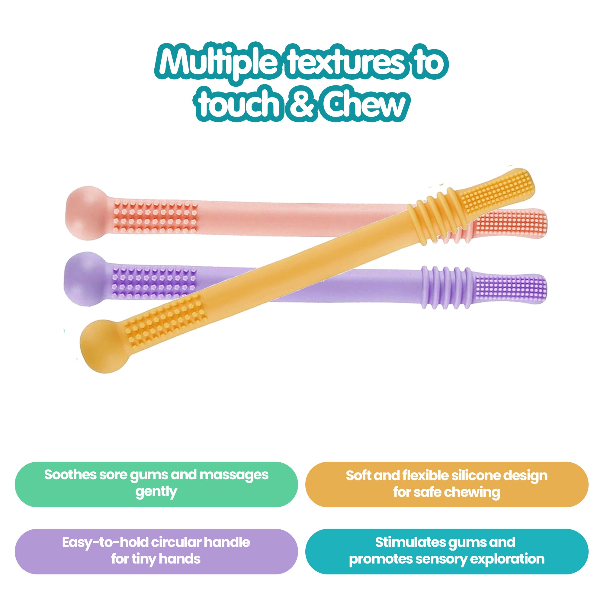 Made from baby-safe, food-grade silicone, these soft chew toys help relieve teething pain while supporting sensory play and early development.