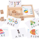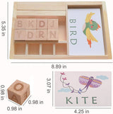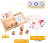 - PACKAGE INCLUDING: The matching letter game comes with a wood tray, 30 pcs double side English words cards(60 word cards with 3 and 4 letter words.), 8 pcs alphabet cubes, 1pcs game board.