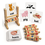 2️⃣ Match the Letters: Rotate the wooden blocks to spell out the word on the card.