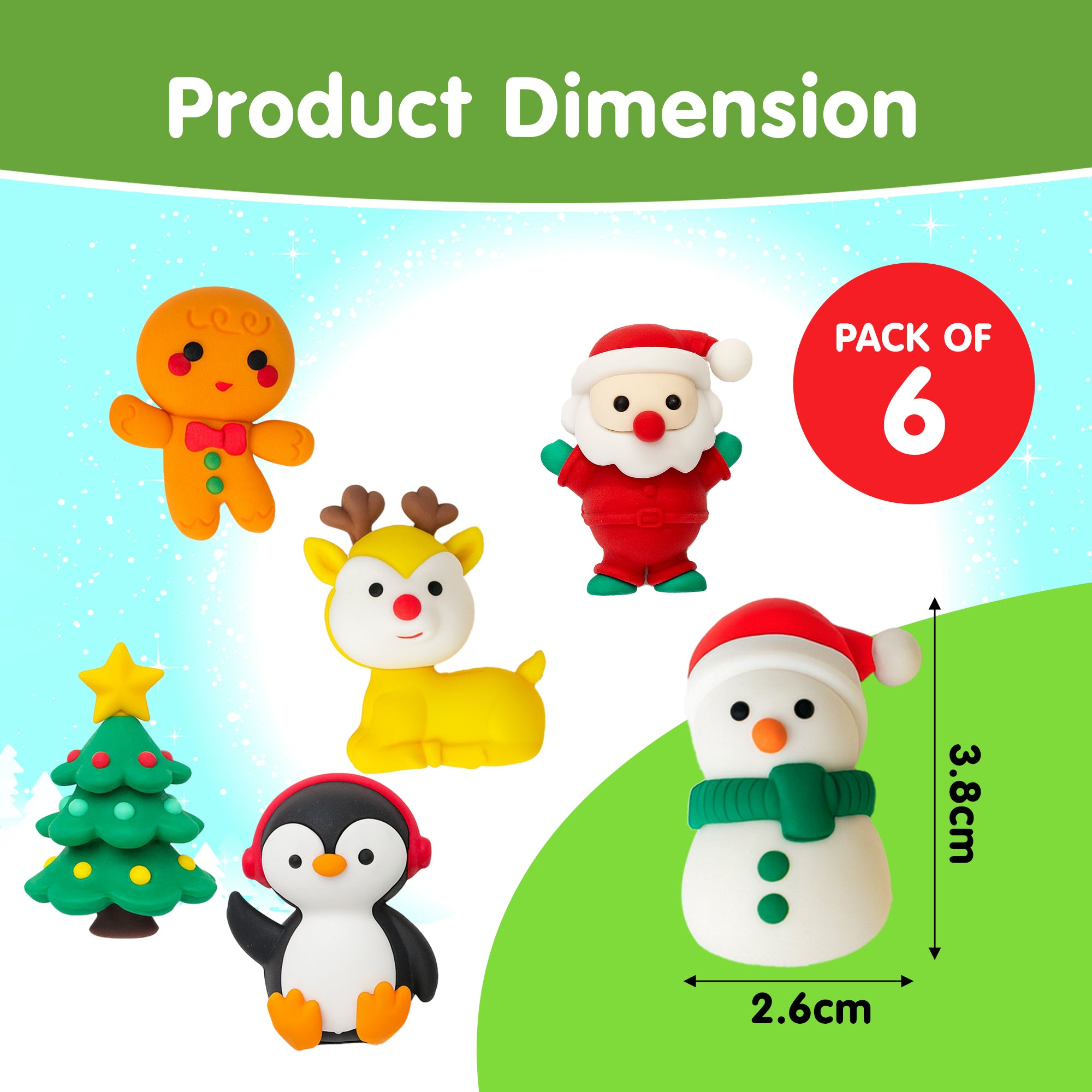 ✔️ 6 × Christmas-Themed Soft Rubber Erasers
