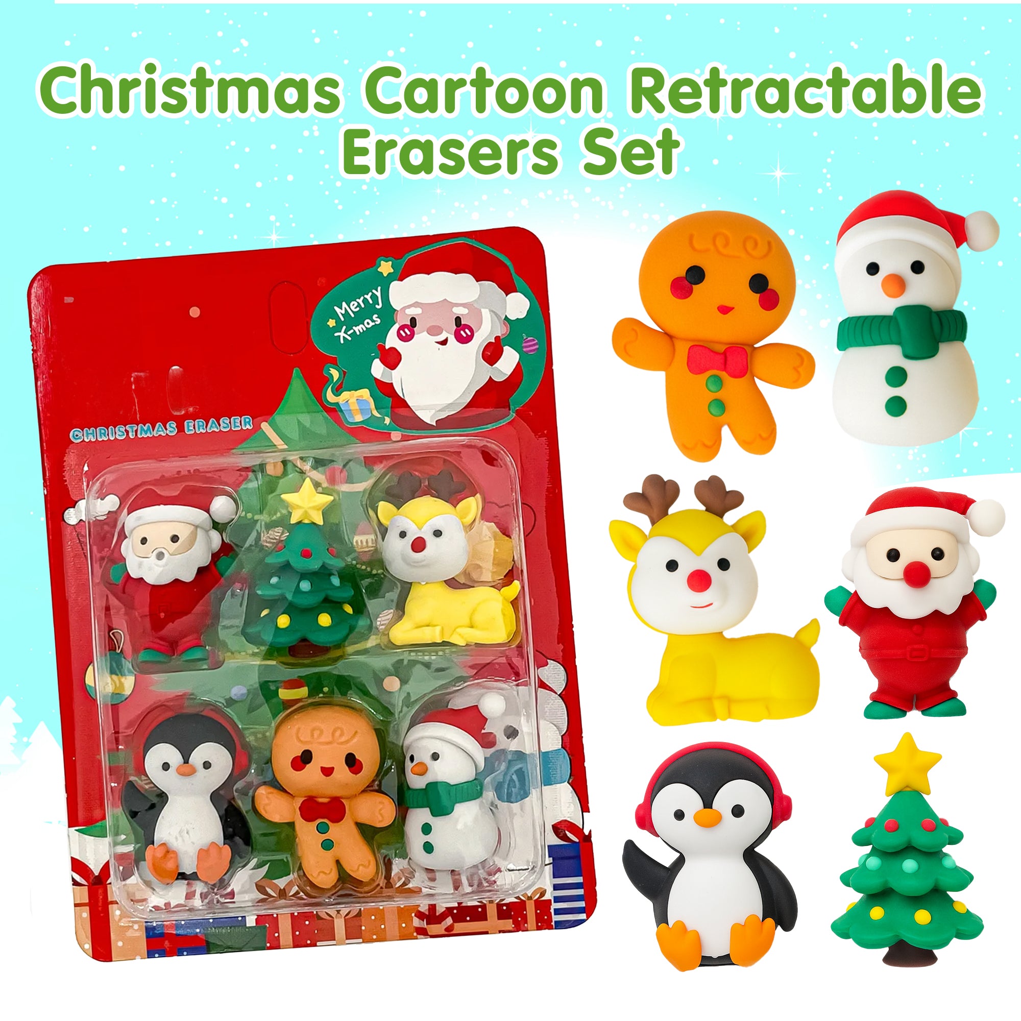 6Pcs Christmas Eraser Set