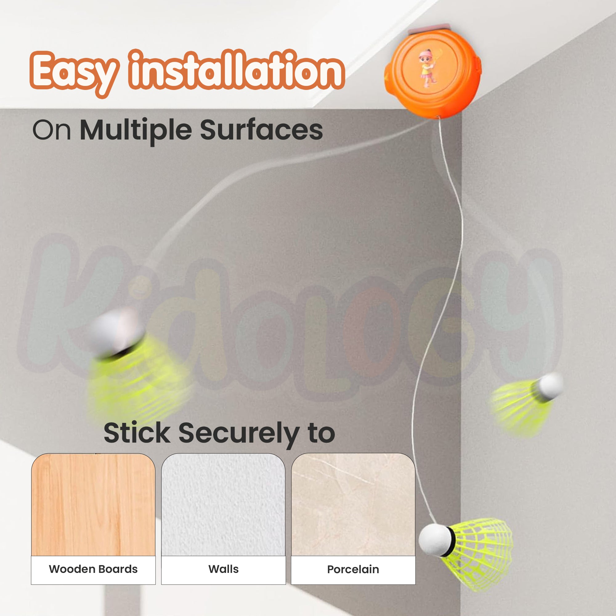 The Badminton Self-Training Kit is a revolutionary way to practice independently. Featuring a durable elastic cord for natural shuttlecock rebound and an easy-to-install adhesive mount, it allows you to create a training zone anywhere! Whether indoors or outdoors, this kit ensures skillful and active play.