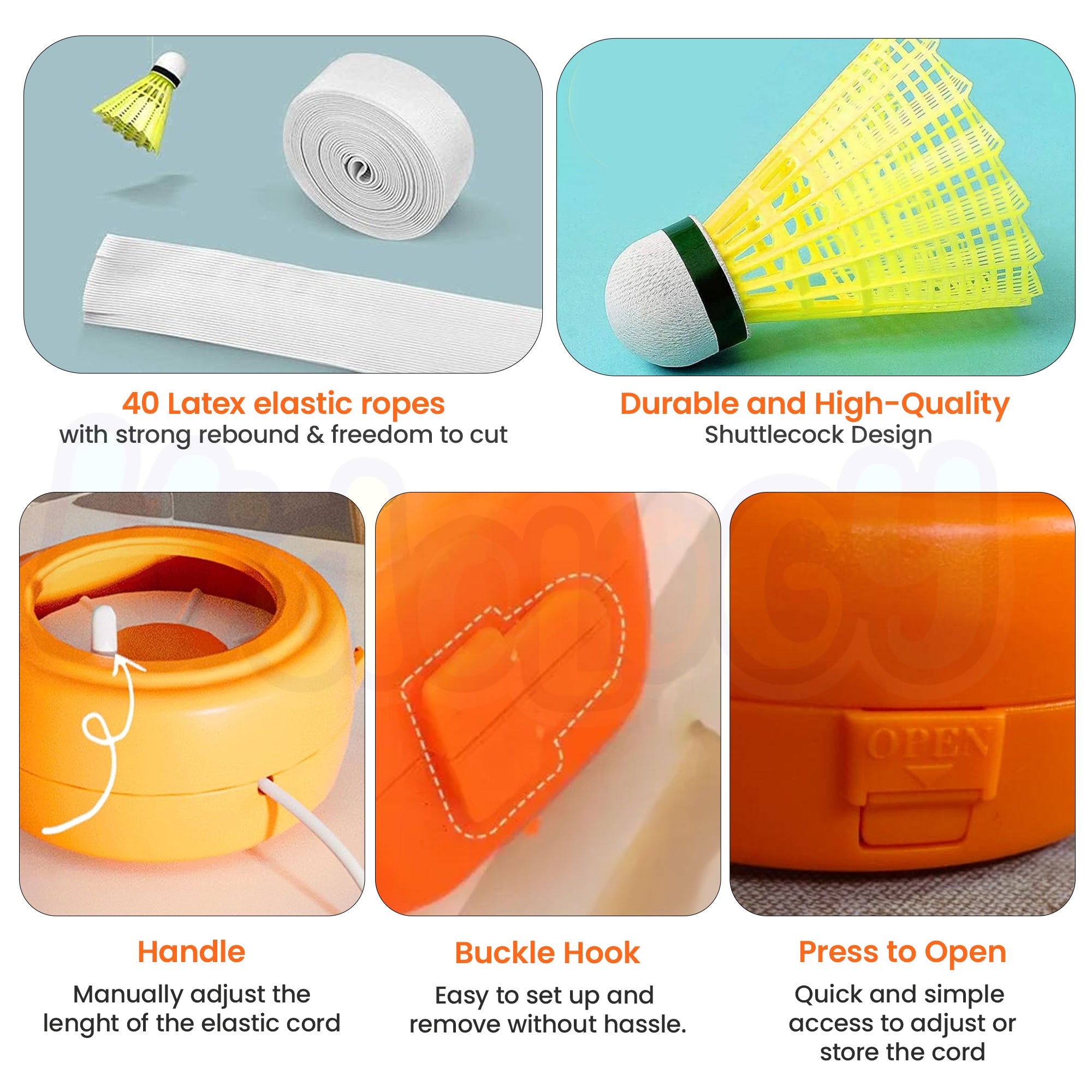 - 📋 Material: High-quality elastic cord, durable shuttlecock, and adhesive hook.