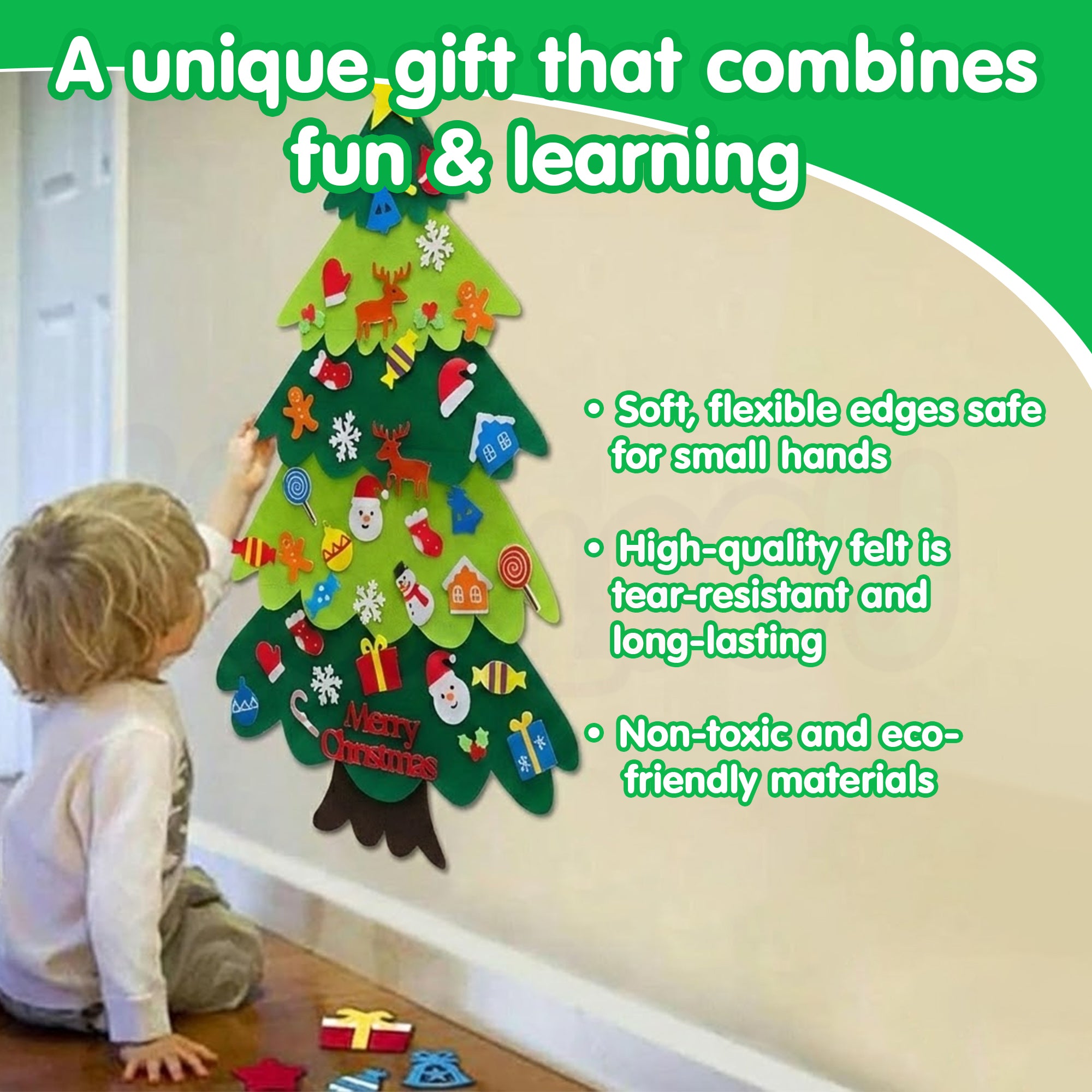 Hang the tree → Let kids decorate → Redecorate anytime for endless fun!