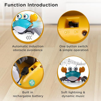 - Chase and Crawl: Encourage your baby to crawl after the crab as it moves around, avoiding obstacles with its smart sensors.