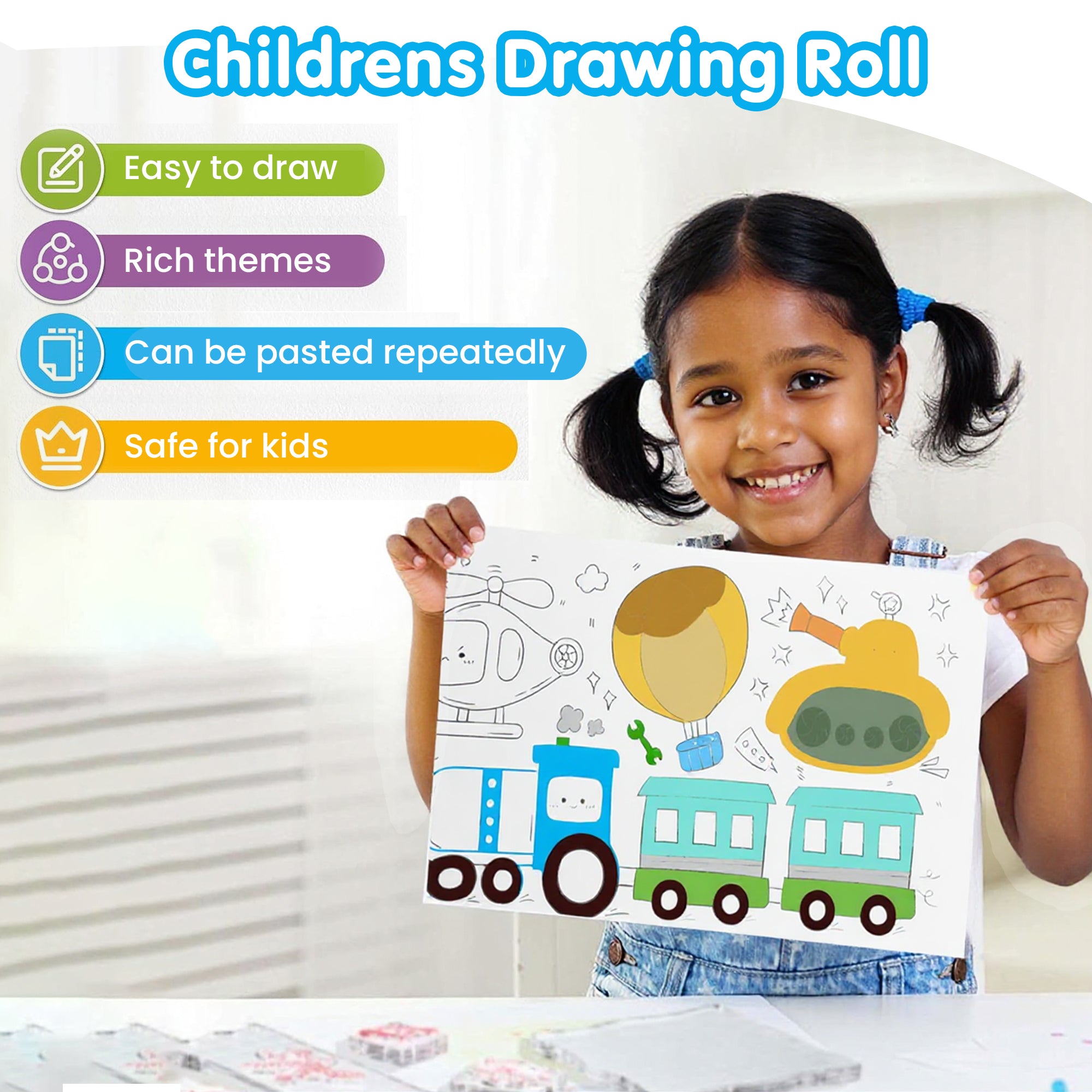 Give your child unlimited space to create! The Drawing Book Coloring Paper Roll is a long, smooth white paper roll perfect for drawing, coloring, doodling, and painting. Ideal for home, school, and craft time 🌈