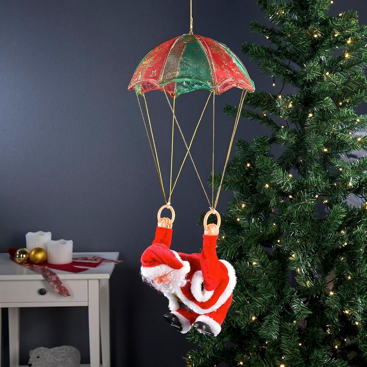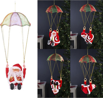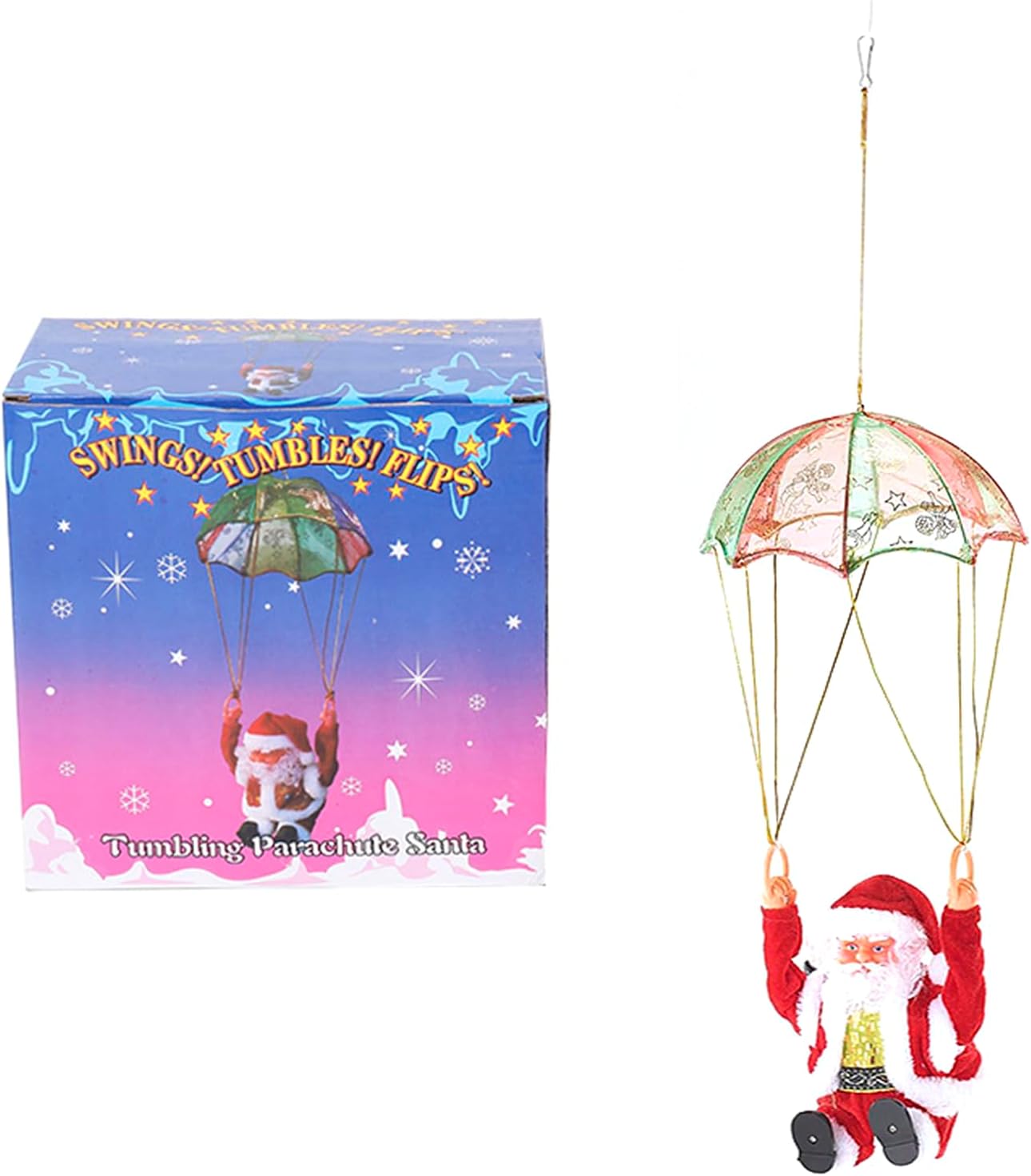 Inject holiday fun into your home with the Tumbling Parachute Santa Toy! Watch as Santa floats down on a vibrant parachute while singing festive songs. Perfect for decking the halls, surprising loved ones, or simply sparking joy in any room.